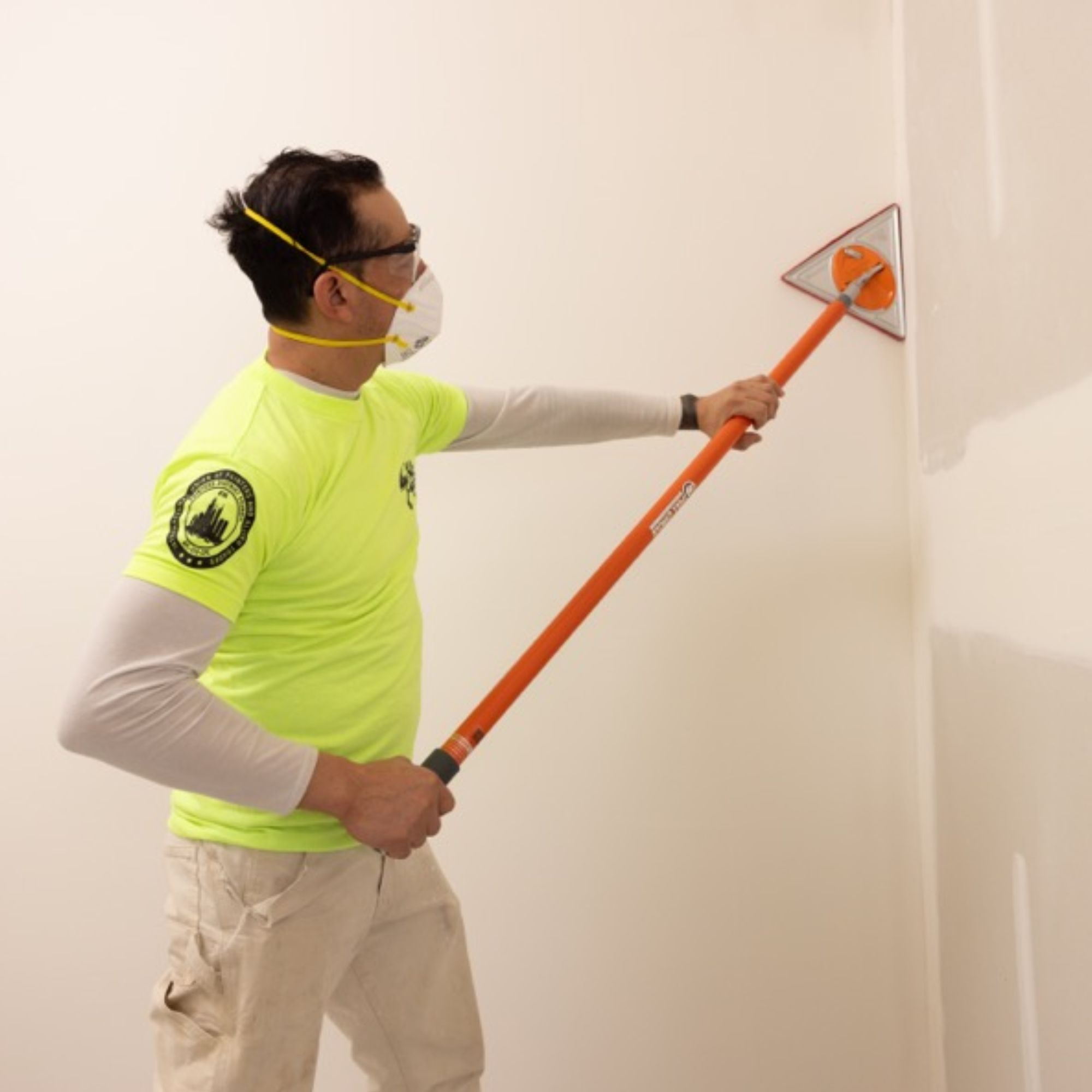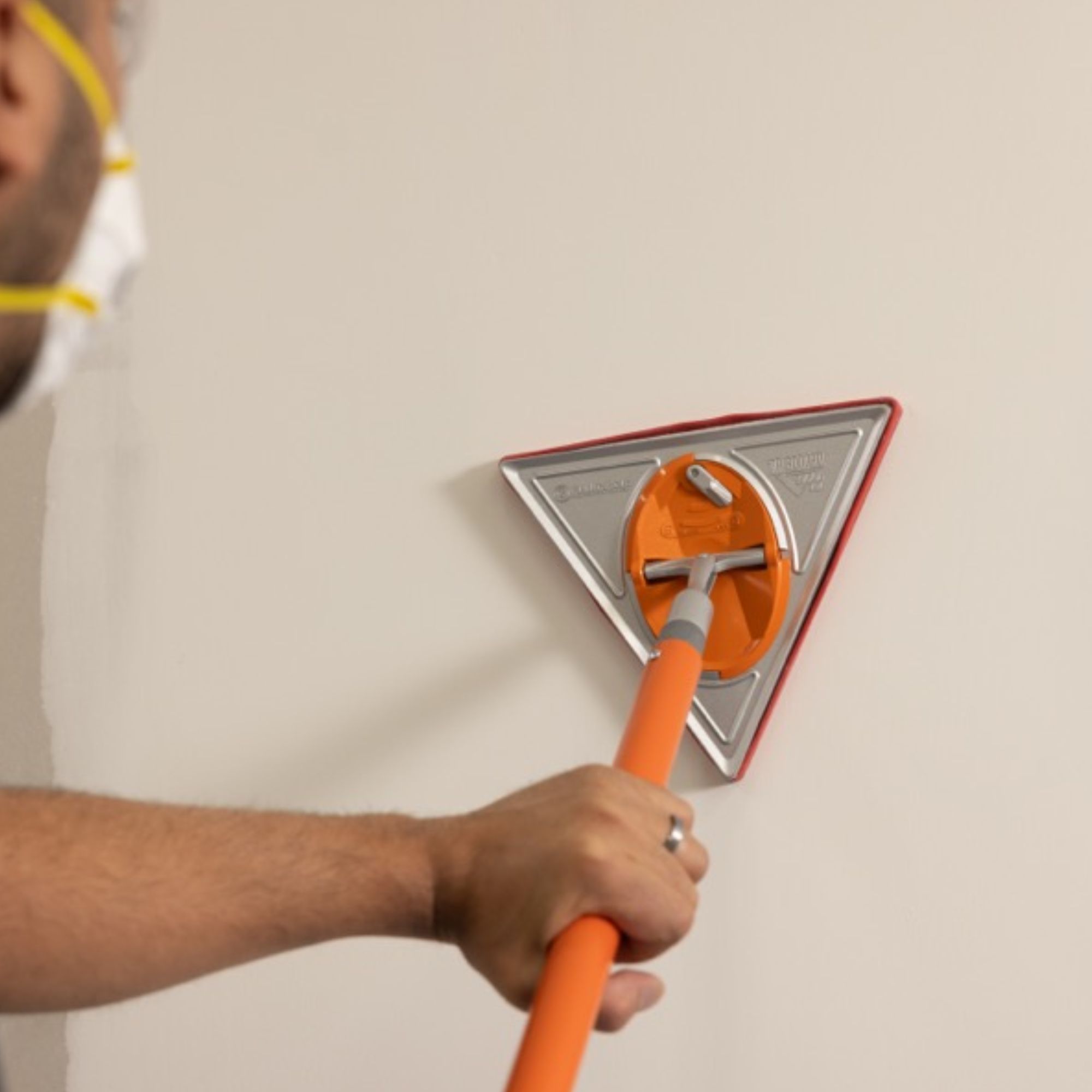 Description: Trigon 180° triangle pole sander • Large triangle head and specialised pivot mechanism makes the Trigon 180° a great non-flip detail sander • 56% larger area than a standard rectangle sander • 245mm per side • Pad and bumper give a flawless finish without gouging inside corners • Ideal for corners, inside edges • Replaceable foam backing available